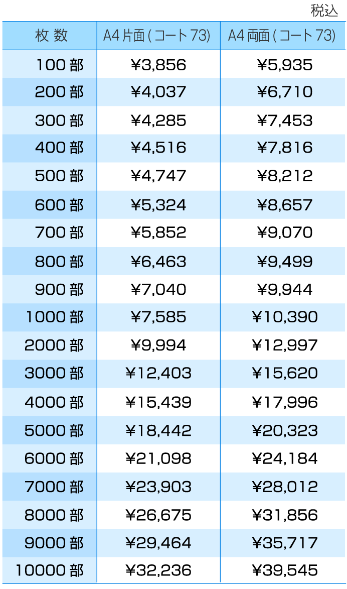 ※上記の金額はコート73、印刷7営業日での金額です。