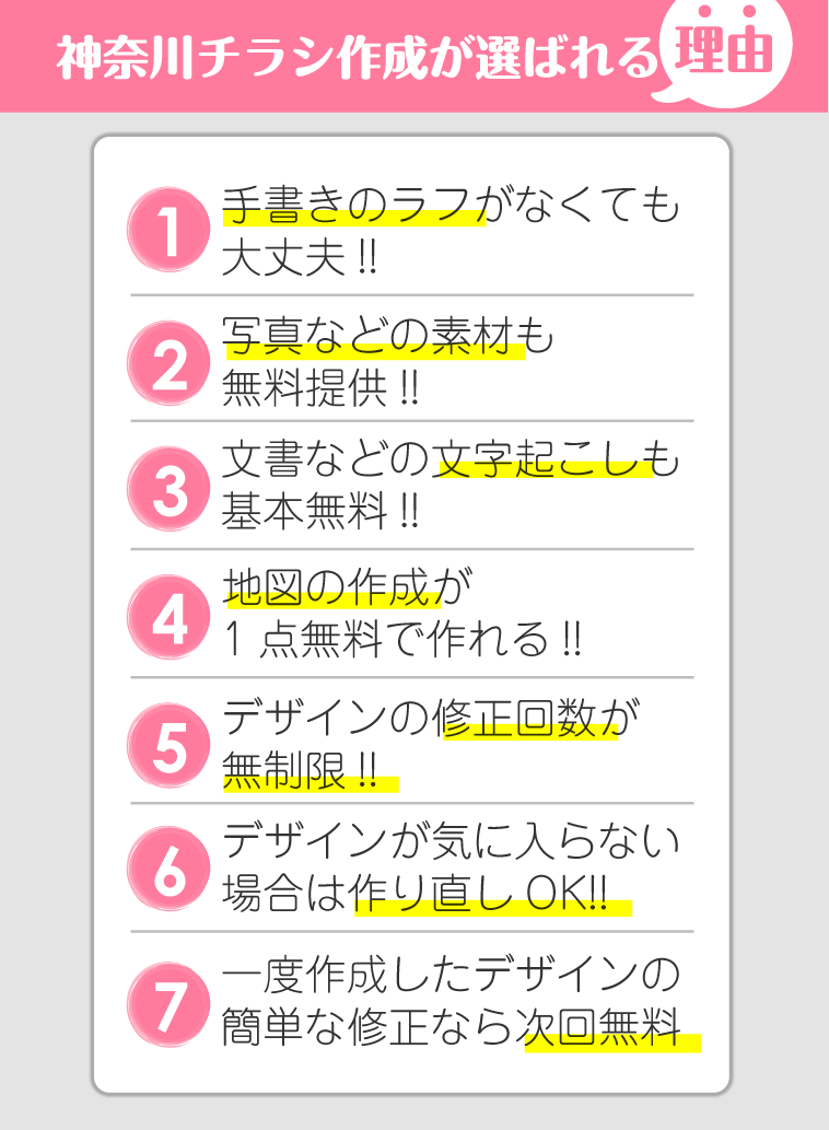 神奈川チラシ作成のチラシデザイン、チラシ作成、チラシ制作、チラシ印刷の強み