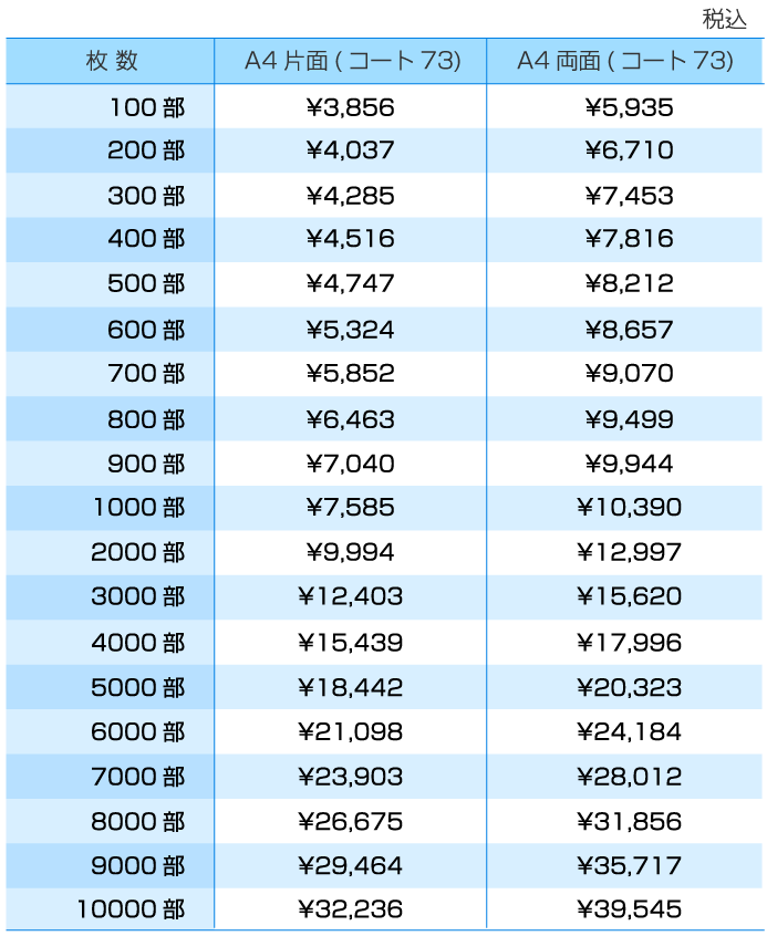 ※上記の金額はコート73、印刷7営業日での金額です。